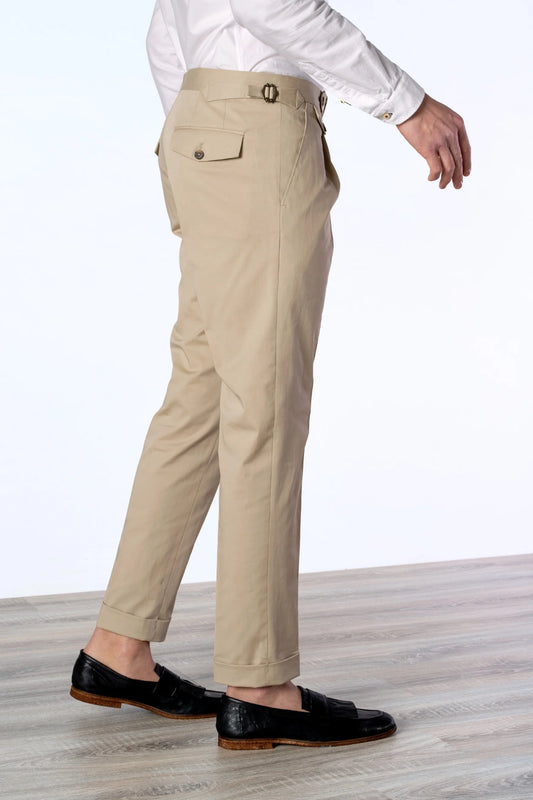 Spring summer light beige cotton chino trousers