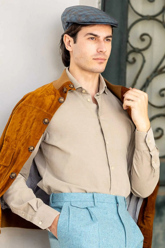 Beige Velvet Shirt 100% Cotton Autumn Winter