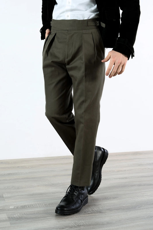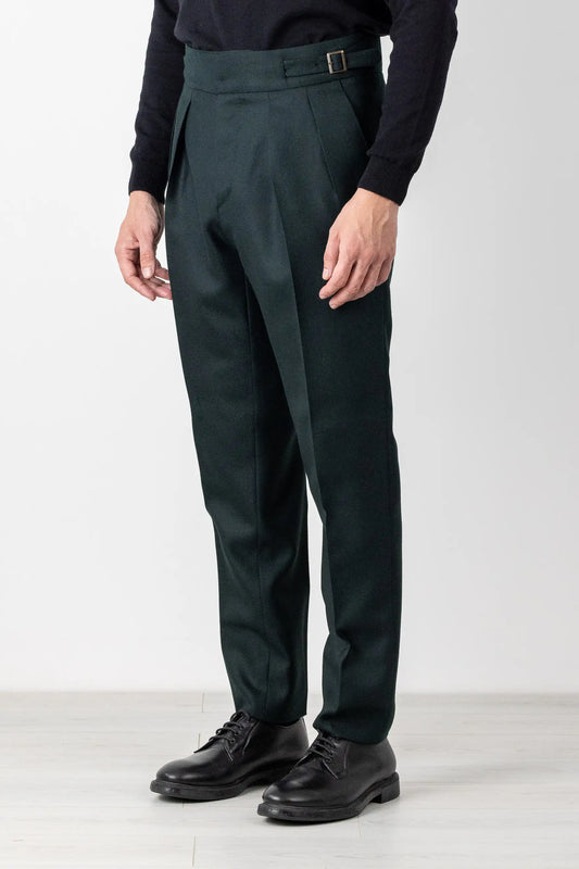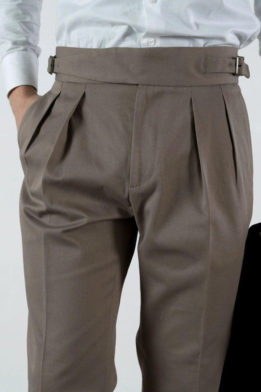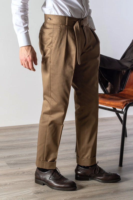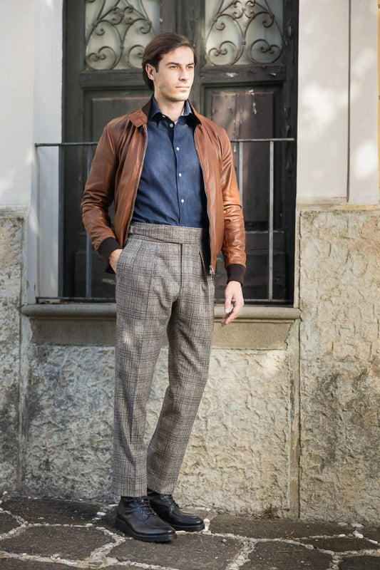 Pantalon en flanelle de laine à carreaux marron automne hiver 130's