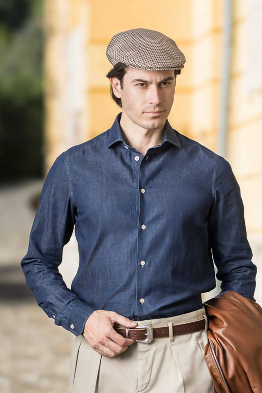 Casquette Plate à Rayures Gris Foncé - Laine, Automne Hiver