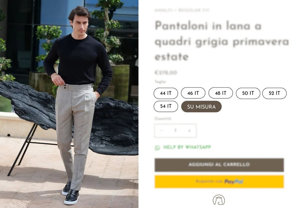 Scegli i pantaloni che preferisci e fornisci 5 semplici misure, ricevi direttamente dalla sartoria in Italia i tuoi pantaloni su misura