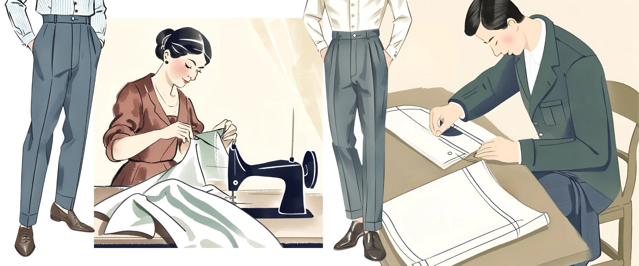 - After designing, your trousers will be cut, sewn and ironed by our expert tailors in our workshop in Italy