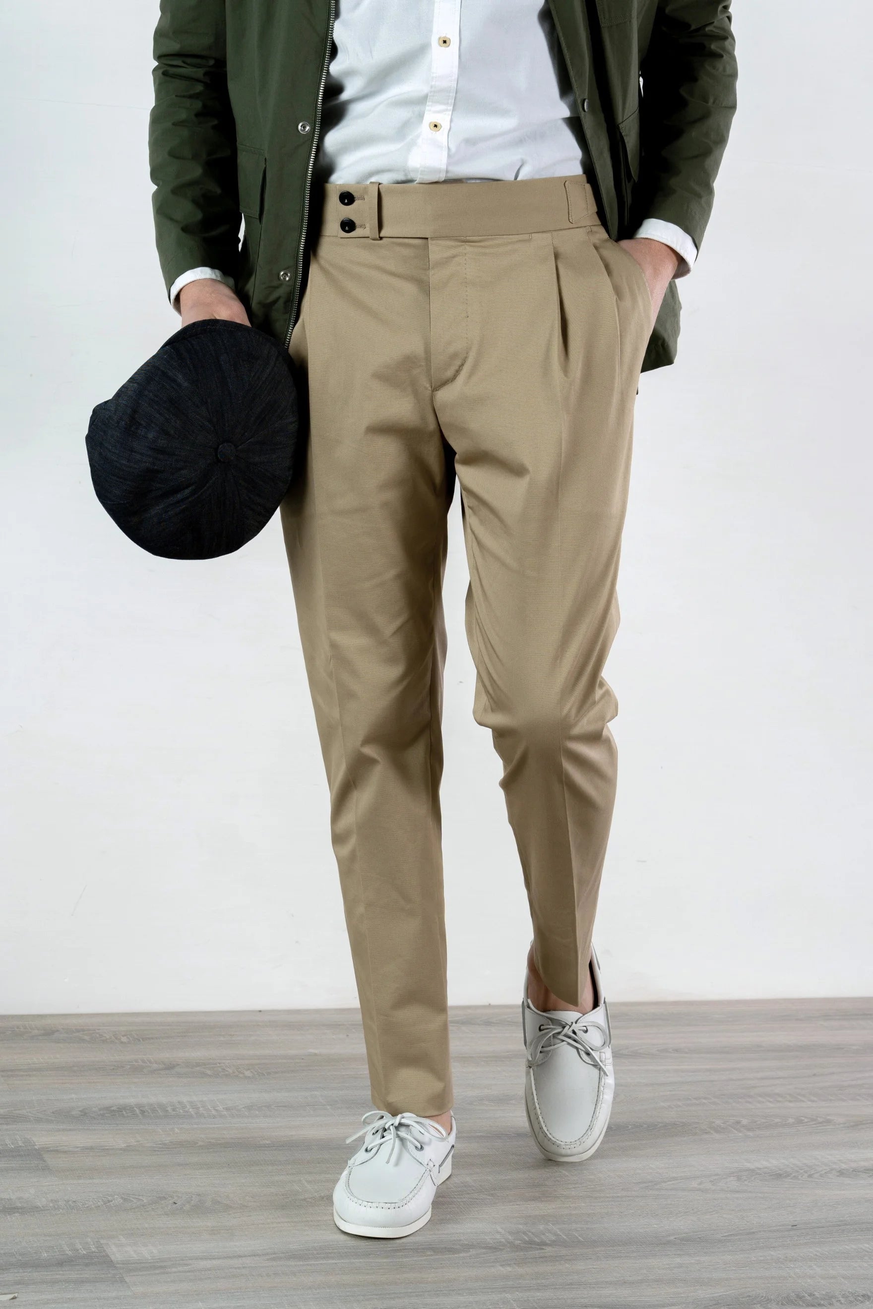 - Trouser fabric 98% cotton 2% EA beige spring summer made in Italy